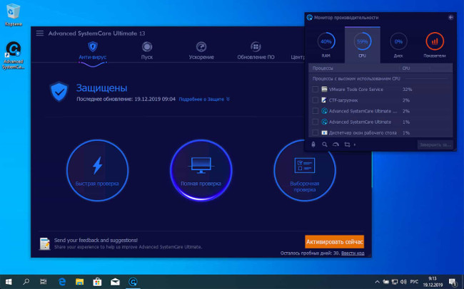 В интернете масса программ для настройки и ускорения. Но не все они эффективны, и пользователь, применив такую программу, не замечает увеличения производительности. Счастливым исключением из целого ряда подобных предложений является русская версия Advanced SystemCare. Эта утилита действительно освобождает компьютер от лишних файлов, вирусов и троянов, вредоносных кодов, приятно оживляя операционную систему и придаёт работе былую скорость. Время открытия и запуска файлов явно уменьшается. Для доступа к упомянутым опциям достаточно бесплатно скачать Advanced SystemCare и установить.