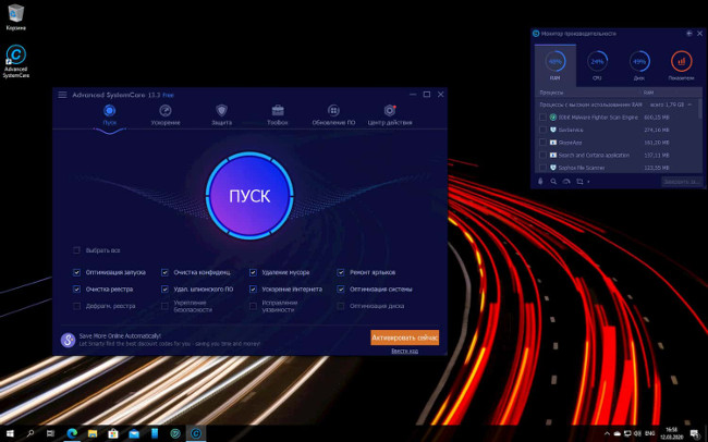 Нередко складывается ситуация, когда в компьютере накапливается большое количество уже ненужных файлов, засоряется память устройства. Тогда на помощь приходят программы по очистке диска от мусора, многие из них можно скачать в интернете бесплатно. Advanced SystemCare — это на 100 % free-пакет различных программ для повышения эффективности, регулировки, редакции неточностей и увеличения общей продуктивности рабочей компьютерной системы. Скачать Адвансед Систем Каре на русском в последней версии можно прямо на этой странице.